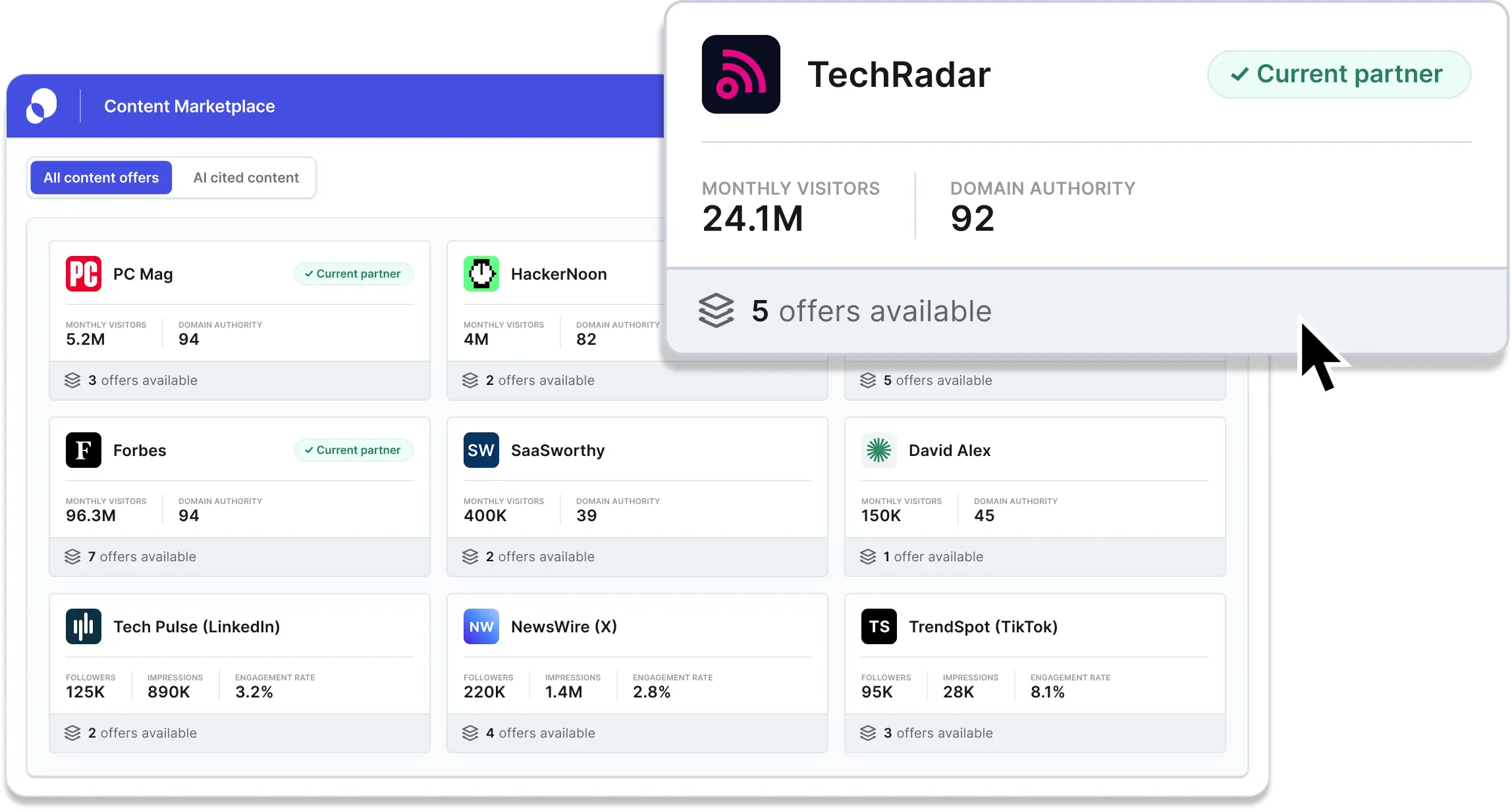 AI visibility isn't won with one placement. It's built across dozens of sources, audiences, and formats — and that requires a structured way to find, activate, and manage those partnerships.